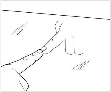 這類鏡子從表面上的確很難辨認。那麼我們有什麼具體的辨認方法呢?那就依照下圖用手指輕觸鏡子做測試,結果如下: