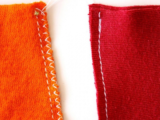 (上圖)把兩片布對縫起來