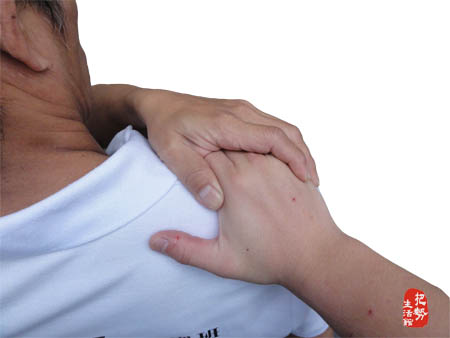 使用重點:將對方折腕(手腕與小臂呈直角死角),另一手頂住對方手肘。