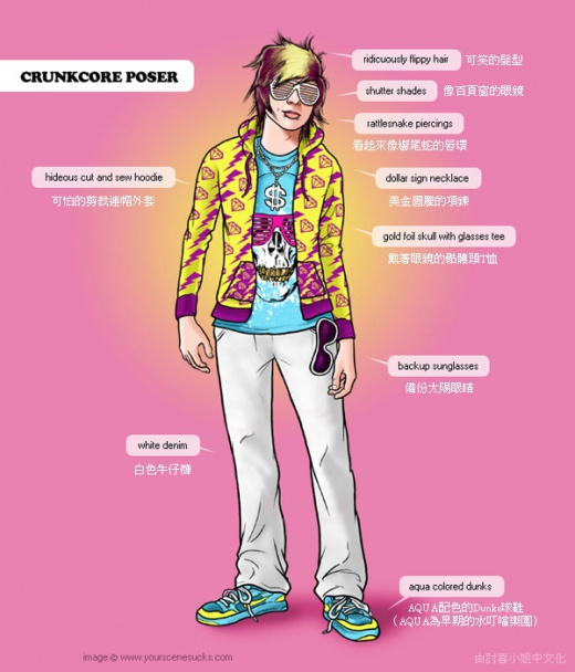 ▲這很明顯就是在嘲弄一個叫做BROKENCYDE樂團的主唱,主唱的打扮和這張圖簡直是如出一轍。crunkcore是一種音樂流派,相關資訊可以查這邊。