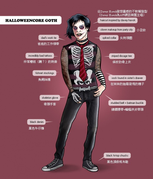 ▲萬聖節歌德,走的就是黑白、骨頭等等的黑色風。