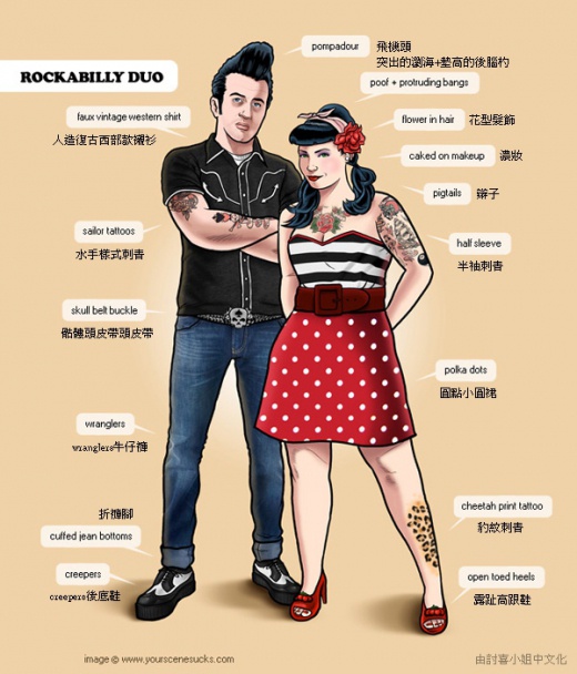 ▲鄉村搖滾風格,女孩子的部份我覺得代表就屬已逝的amy winehouse了吧,男生的部份留著是飛機頭和一身的西部扮相,音樂資訊在這邊。