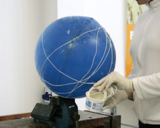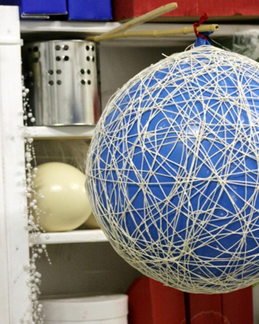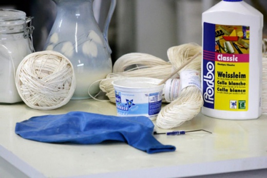 首先你需要準備氣球,幾捆棉線,以及用水稀釋過的白膠 (樹脂)。
