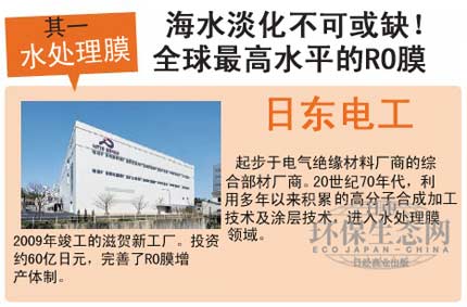 日東電工膜業務部長菊岡稔:「作為環保領域,膜業務在公司內部也備受期待。」 在海水淡化領域,日本企業的「膜」技術非常活躍。不過說老實話,僅僅聽到「膜」這個詞,很難想像出究竟有什麼過人之處。因此,記者來到了在水處理膜領域佔據較高市場佔有率的日東電工公司的滋賀業務所,準備對膜技術的原理、以及日東電工的戰略一探究竟。