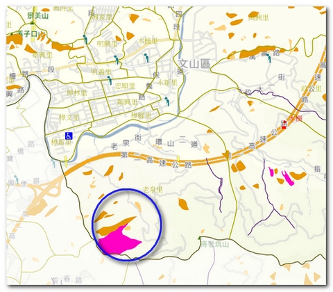 6月12日大雨導致的老泉里的土石流,也絲毫不差地在坡地災害潛勢地圖標示紅色的最危險地點: