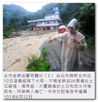 當我在寫這篇部落格的時候,電視新聞也正播報三峽台北大學和土城街道正淹水中。這是非常即時的資訊。