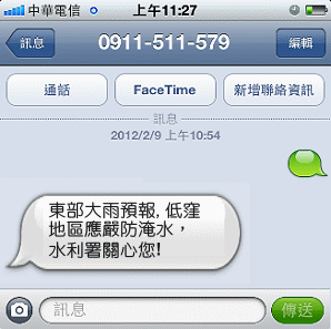 必學之三: 主動防災系統,可按照不同區域以手機簡訊收到即將發生的淹水災情: