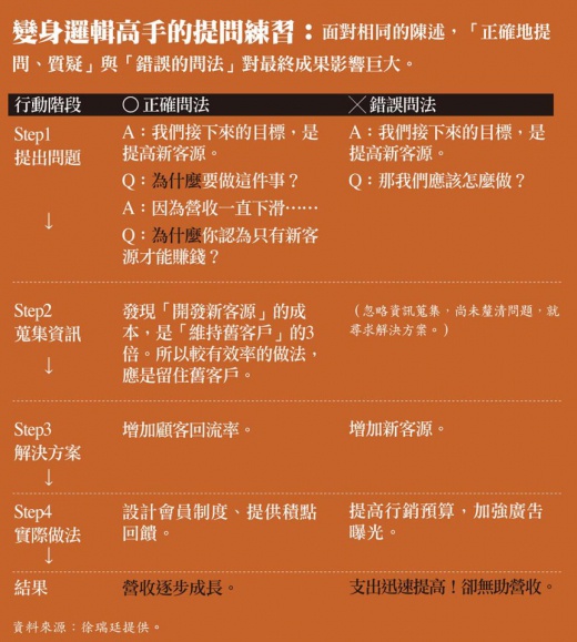 面對相同的陳述,「正確地提問、質疑」與「錯誤的問法」對最終成果影響很大。