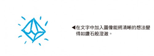 掘出來;如果光靠文字,可能永遠無法發現。透過圖文思考,不只聽眾能從圖像中得到啟發,我們的言談也從此不再枯燥乏味。