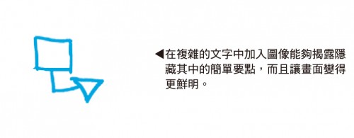 「指數1」的廢話呢?加入圖像可以讓無聊的訊息變得有趣嗎?答案同樣是肯定的,當然可以囉!運用簡單的圖像說明複雜的概念,能夠將隱匿其中的要點與不同觀點發