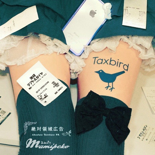 但是腦筋動得快的日本同胞,對於這一塊白嫩的大腿還有別種應用喔!除了觀賞之外,還可以拿來當成活體廣告牆!太有創意了!快拍拍手~