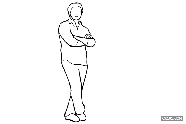 ▼ 交叉雙手(全身照)︰在拍攝全身照時,讓一隻腳繞到另一隻腳前,但留意重心應放在其中一隻腳上,而不要平均重心,否則看起來較奇怪。