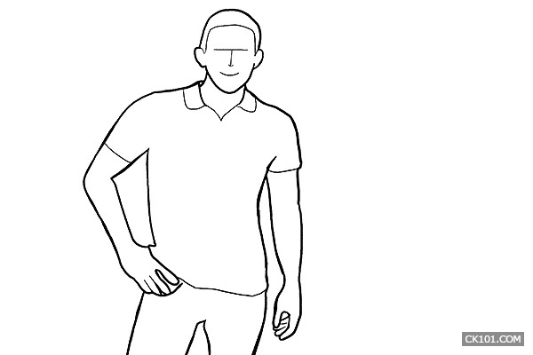 ▼叉腰垂手︰很多時男模特兒會不知道雙手怎放才好,答案其實只有四個︰輕鬆垂手、在臀部、在口袋或交叉胸前。重點是放鬆肌肉,除非你在拍攝健美先生比賽。