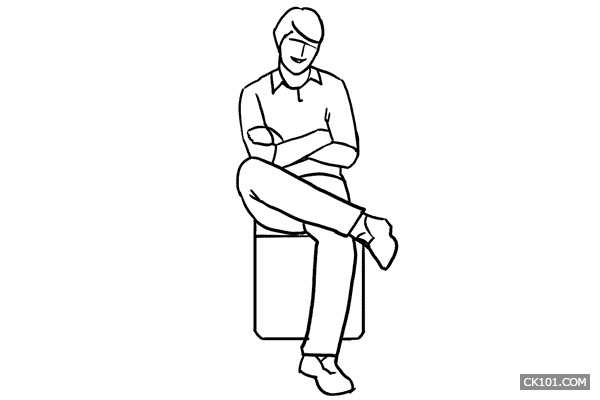 ▼ 坐姿︰把一隻腳的足踝放到另一隻腳上,感覺會輕鬆自在些,試用高一點的角度拍攝。