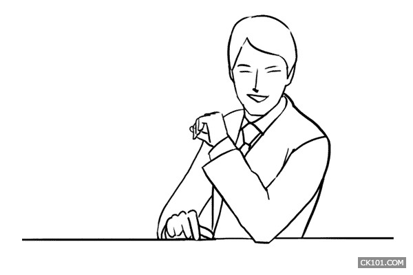 ▼坐在檯前3︰稍稍挨向檯邊,同時轉向鏡頭,當然也可在檯上放合適的物件以突出對像身份。
