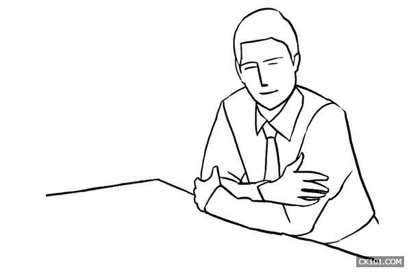▼ 坐姿2︰不要完全坐進椅子,坐出一點,身稍稍轉向鏡頭,整體感覺會不那麼硬繃繃,會更平易近人。