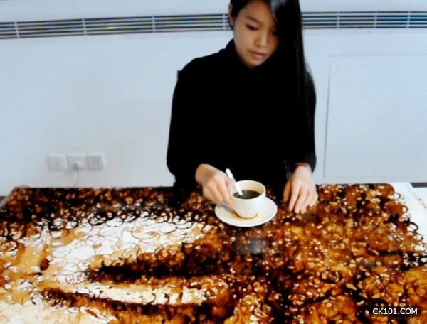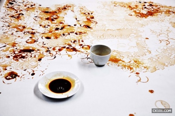 咖啡成了顏料,而咖啡墊盤成了調色盤。
