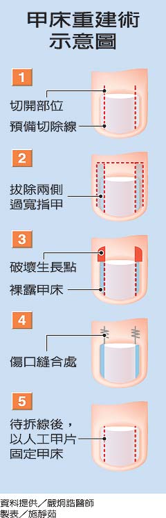 裝上人工甲片固定甲床。圖片嚴烱炯誥醫師提供