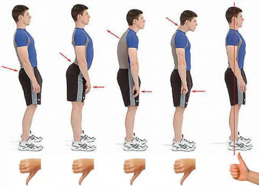 常見錯誤站姿如,下巴前伸,如此一來頸部後側的肌肉必須更費力支撐頭的重量,於是造成肩頸痠痛。此外,骨盆前後傾斜的角度過高,屁股總是翹得高高的,腰部的肌肉很快疲乏,腰酸背痛就跟著來了。站姿不正確經長時間下來,身體的筋傷日積月累,腰痛、背痛、小腿酸麻、抽筋、靜脈曲張及腳拇指外翻等症狀就跟著上身。