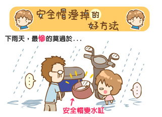 在這當中,最可憐的就屬....沒有注意到會下雨而開口朝天掛在機車外面的安全帽了...