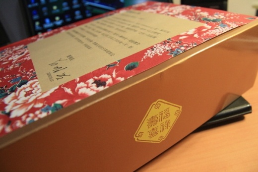 金黃盒子側面,還有「福祿壽喜」的提字,在在顯示台灣人的熱情!
