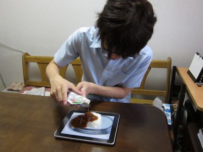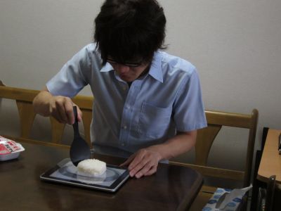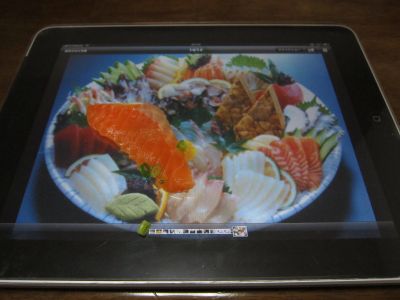 當你想吃飯卻沒有碗盤的時候該怎麼辦?只要有iPad就沒關係!iDish! (Dish是餐盤的意思,加上蘋果每代產品都喜歡用 i 當開頭,結合起來就是iDish) 這是iPad. Wi-Fi + 3G model.