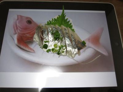 不小心按到螢幕,結果背景變成生魚片大餐,算了,這樣吃甜點也別有一番風味囉