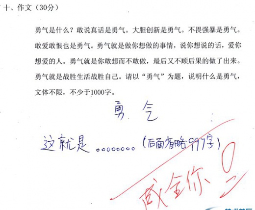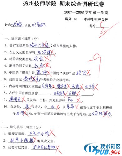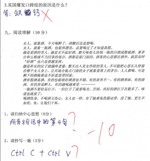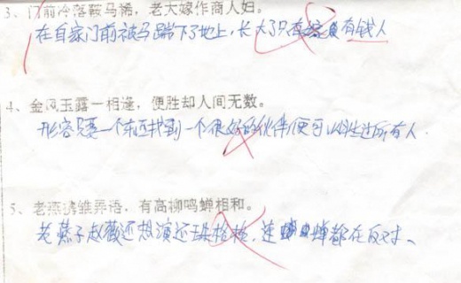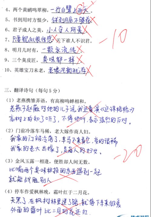 這是昨天看到的大陸揚州某校的考卷,害我剛吃完飯笑到肚子痛。只能說寫考卷的人太有梗了,有些詩詞對句還頗有意思的,我差點都以為本來就是這樣了(哈)。