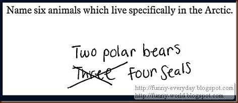 Q:舉出6種在北極生存的動物 A:2隻熊、4隻海豹