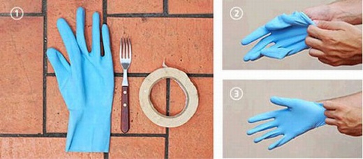 首先準備塑膠手套...然後拿午餐用的叉子和膠布就可以...金鋼狼
