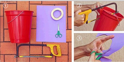 準備個不要的水桶鋸子...和紫色的西卡紙就可以...