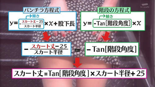 基本上這個「最安全的裙子長度」是由他們算出的「樓梯方程式」和「露內褲方程式」而來。