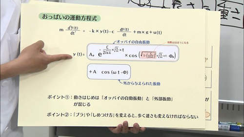 把牛頓運動定律變成「胸部的運動方程式」,牛頓應該會爬出來吧...但下面的重點有讓我傻眼,原來胸部的擺動有「胸部本身的震動」和「外部震動」,那~所謂的外部震動是......???