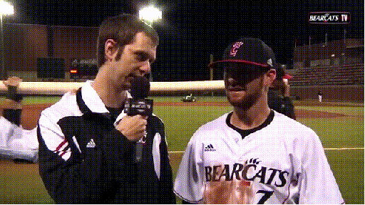 在棒球賽場上會有感人的瞬間,也會有搞怪的一刻。辛辛那提大學Bearcats棒球隊,在每次賽後採訪時,隊員都會發揮奇思妙想,亂入採訪時刻!