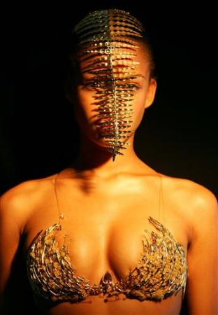 金色鳳凰。(2005年4月7日,澳大利亞悉尼,澳洲黃金協會展覽上的18K金制內衣。) (路透社 David Gray)