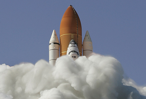 3、2008年5月31日,發現號航天飛機在佛羅里達州肯尼迪航天中心發射,前往國際空間站