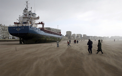 18.March 10, 2008. 荷蘭的船舶阿耳忒彌斯號因 dph130 公里的強風擱淺在法國海岸