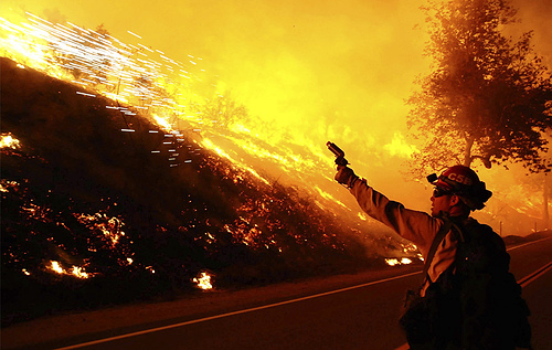 33.October 12, 2008. 洛杉磯北 32 公里 , 消防隊員使用照明彈製造回火