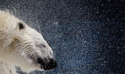 35.March 6, 2008. 魁北克聖費利西安野生動物園的北極熊從頭上把水搖去