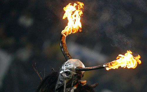 37.November 12, 2008. 一名男子在奧地利足球聯賽中穿著傳統 Perchten 服裝(全身看起來像是 wow 裡的薩特)