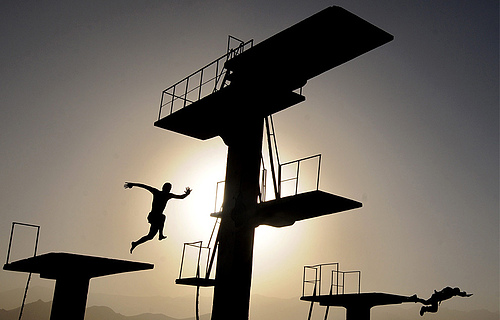 22.June 24, 2008. 阿富汗青年在喀布爾跳入游泳池 , 當地氣溫接近 30 攝氏度