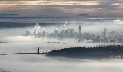 27.November 17, 2008. 晨霧中的溫哥華市中心和獅門大橋