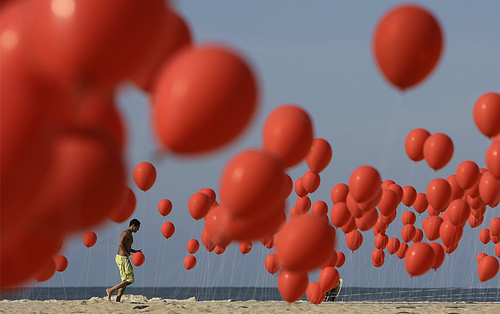32.June 27, 2008. 里約熱內盧的科帕卡巴那海灘示威者放置 4000 個紅氣球代表未來六個月中可能會遭受暴力的受害者