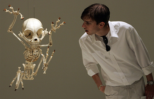 34.August 26, 2008. 遊客觀看放置在瑞士巴塞爾的貓和老鼠中貓的模擬骨骼(韓國藝術家 Hyungkoo Lee 製作)