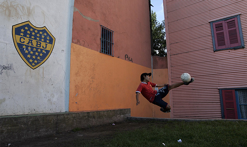 4.March 11, 2008. 阿根廷布宜諾斯艾利斯 La Boca 附近一個小孩在踢球