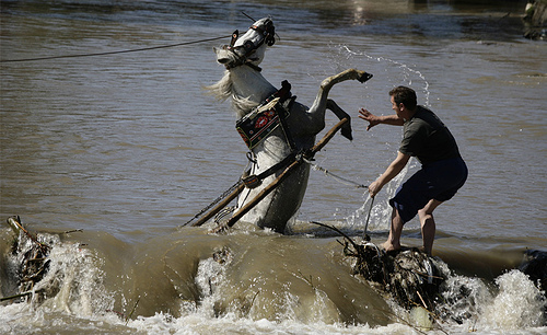 5.March 26, 2008.一名科索沃阿族人在普力士蒂娜以南Stimlje 拯救一匹衝入河中的馬