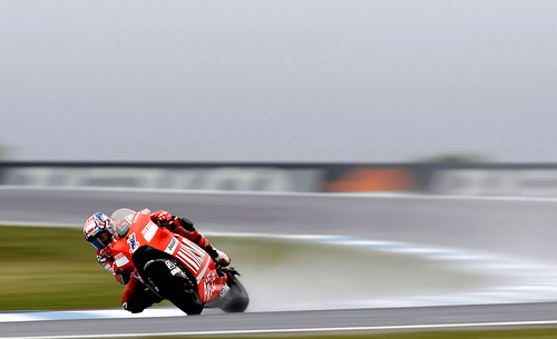 20.October 3, 2008. 澳洲菲利普島 ,Casey Stoner 與 Ducati 隊在濕滑的賽道上參加世界摩托錦標賽