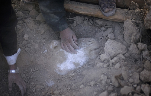 31.October 30th, 2008. 一個巴基斯坦男人嘗試救出地震中被埋的驢 . 南巴基斯坦的地震造成至少 215 人死亡 , 救援人員仍在搜索