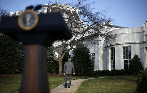 39.March 13, 2008. 美國總統布什在白宮講話後回到橢圓辦公室