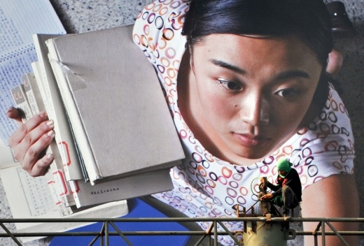 雅加達高鐵工程的腳手架旁邊的一個巨型廣告牌。 (灣ISMOYO /法新社/ Getty圖像)#